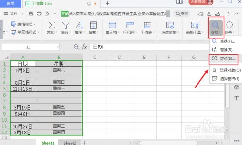 在起头东西栏,点击“查找”,再点击“定位”。
