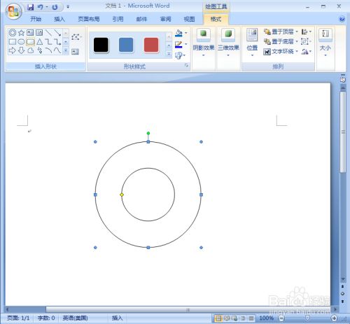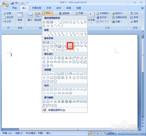点击插入,在外形东西中点击齐心圆;