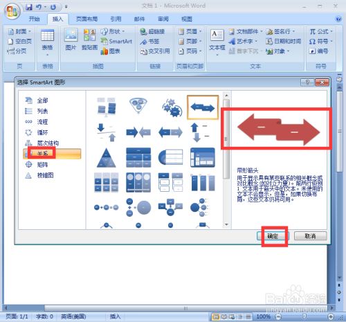 在关系类别中选中带形箭头,按确定;