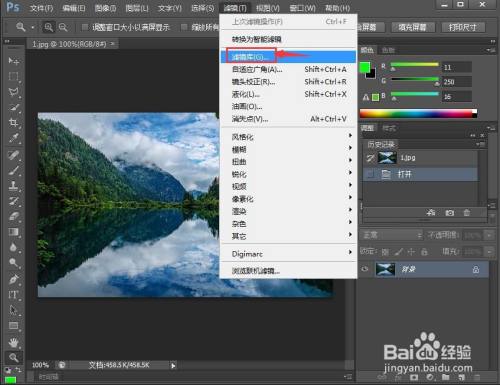 点击滤镜菜单,在打开的下拉菜单中点击滤镜库;