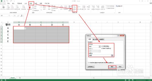 选择B2:F6单位格——数据——数据验证——数据验证——系列——来历输入:×,0,1(中是用英文逗号离隔)——确定。