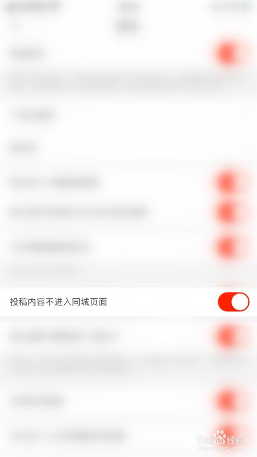 隐私设置界面点击“投稿内容不进入同城页面”后面的圆点