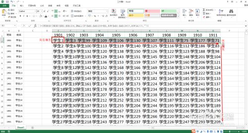 选择E2单位格——标的目的右填充至O2单位可格(最后一个班级)——接着一向标的目的下拖动填充,直至显示空值。