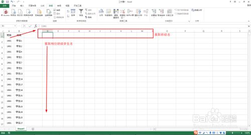 选择E2单位格——输入公式提取响应班级的学生姓名:=IFERROR(INDEX($B$1:$B$1200,SMALL(IF($A$1:$A$1200=E$1,ROW($A$1:$A$1200)),ROW(A1))),"")——同时按ctrl+shift+回车键。