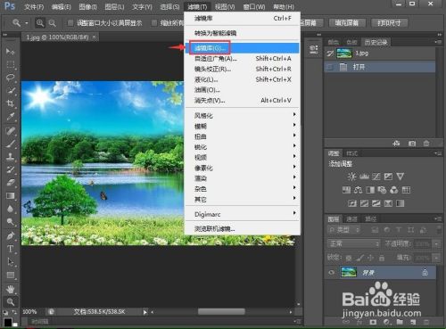 点击滤镜,选择滤镜库;