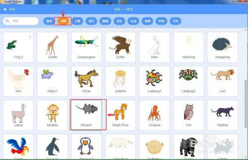 打开选择一个脚色页面,点击动物类别中的老鼠;