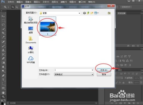 找到要处置的图片素材,选中后按打开;