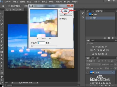 设置好参数,将半径设为9像素,按确定;