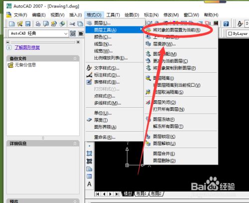然后在【图层东西】子菜单中选择【将对象的图层置为当前】。