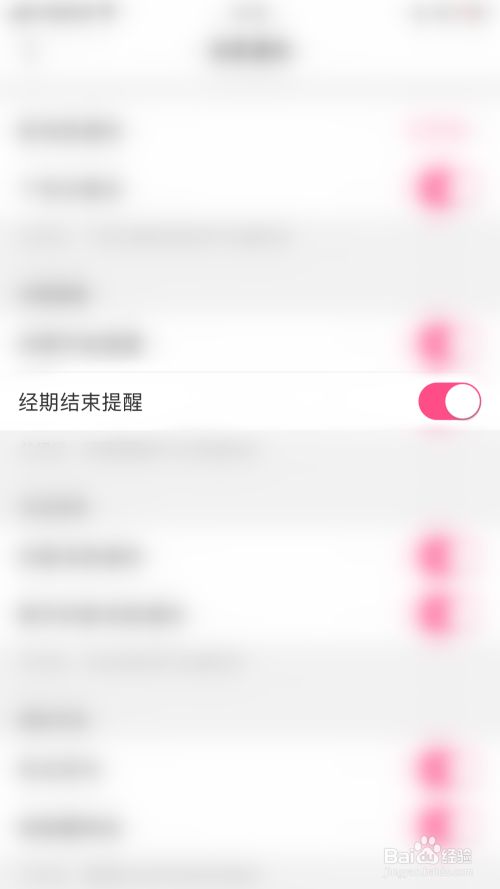 动静通知设置界面点击“经期竣事提醒”后面的圆点