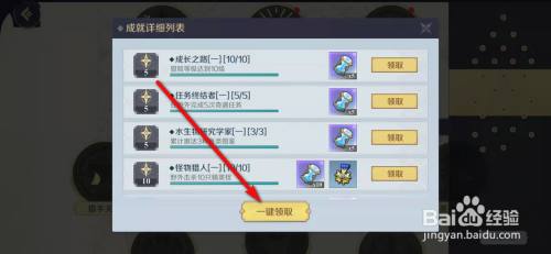 工具/原料荣耀9xEMUI10.1.0.138神角技巧1.2.6方式/步骤1在神角技巧手游,点击打开“菜单”。2点选“当作就树”。3点击右侧的弹出菜单图标。4点击“具体列表”。5点击“一键领取”。6获得所有当作就奖励,点击继续。END