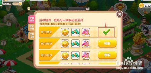 领取当作功后就会显示出一个绿色的对勾,暗示领取道具当作功;