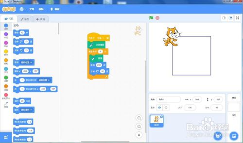 按空格键执行程序,小猫就为我们画出了正方形。