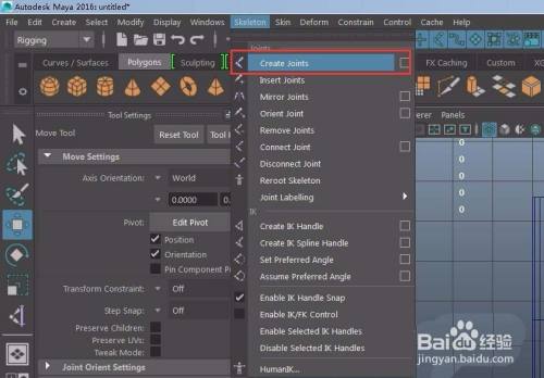 4、点击skeleton----create joints建立骨骼