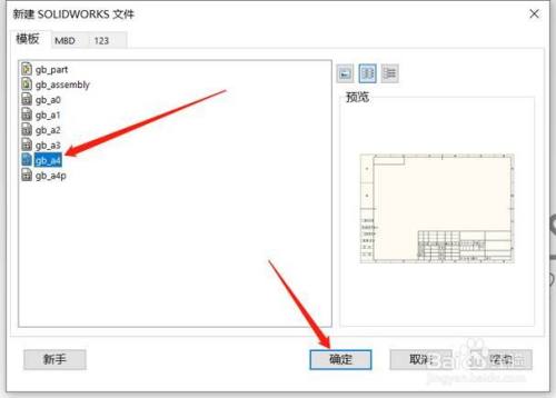 在系统弹出的“新建Solid works文件”高级对话框中选择对应尺寸的工程图模板,然后点击“确定”。在这里我以gb-a4(国标,A4纸张)举例。