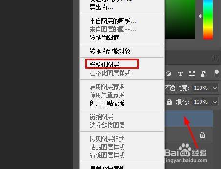 右键点击外形图层,选择“栅格化图层”。