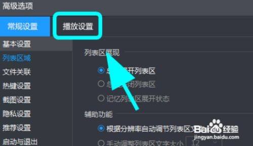3、进入高级选项菜单,点击播放设置;