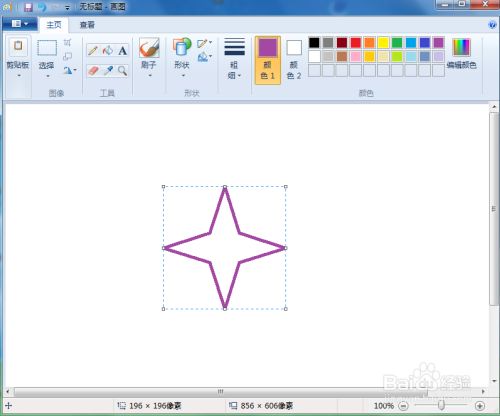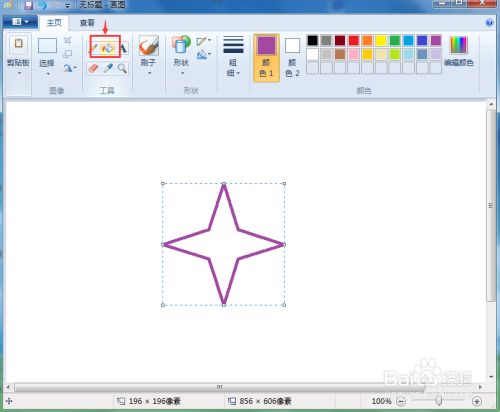 在四角星形内部点击鼠标,给它填充上选择好的颜色,一个四角星就在绘图软件中绘制好了。