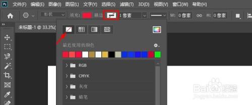 默认环境下,Photoshop 在外形四周添加 1 像素的黑色描边,若是您不需要可以点击,选择无颜色选项。
