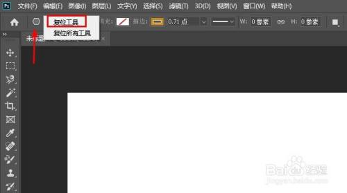 然后在选项栏中,右键单击东西的图标,选择复位东西。