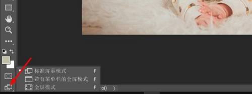 另一个可以找到屏幕模式的处所是在屏幕左侧的东西栏中。该屏幕模式图标是在最底层的最后一个图标。单击并按住该图标以查看弹出菜单,然后从列表中选择一种屏幕模式。