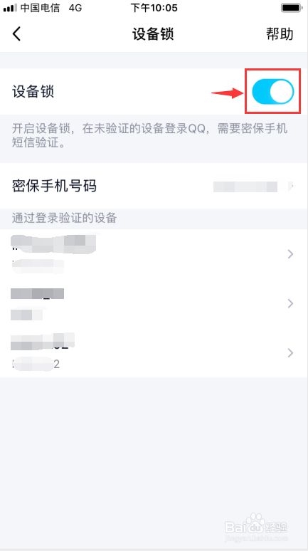 设备锁后面的按钮点亮酿成蓝色,我们就当作功地设置好了设备锁。