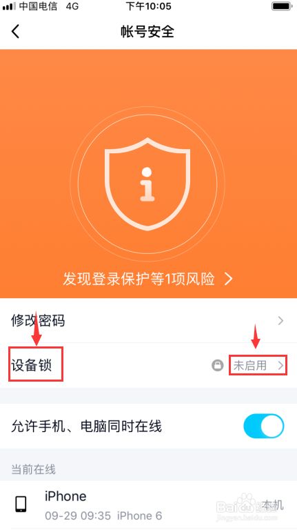 在帐号平安页面找到设备锁,点击后面的未启用;