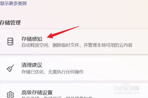 最后,在右侧的“系统/存储”页面中,将“存储感知”处右侧的开关按钮打开即可。