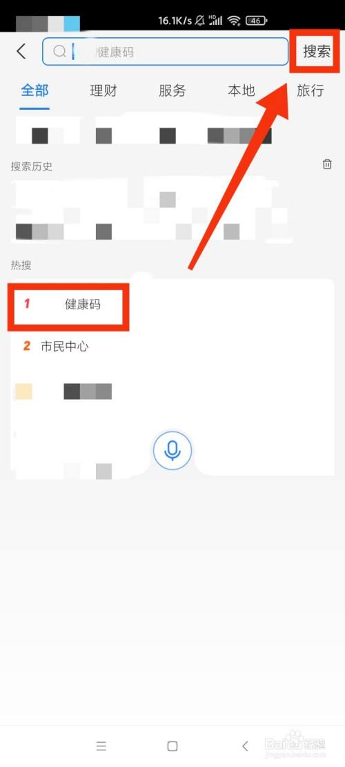 点击页面最上方的搜索框,填写健康码,再点击搜刮。