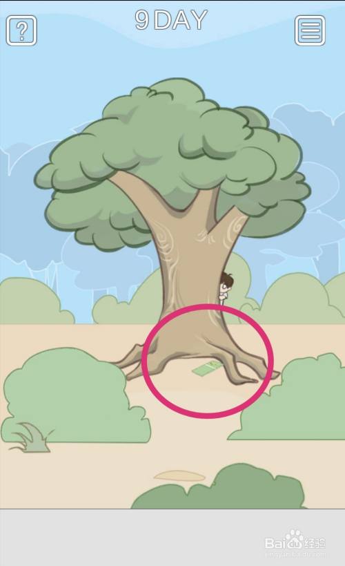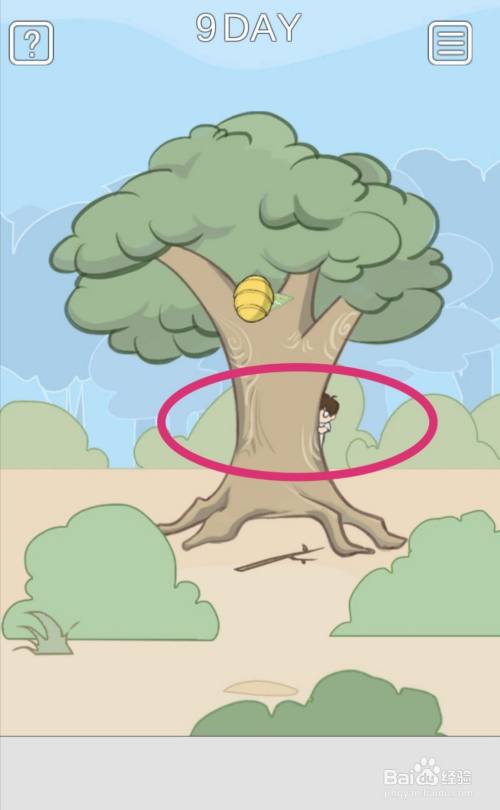 首先,点击大树的【树根】,男本家儿就会站到大树下。