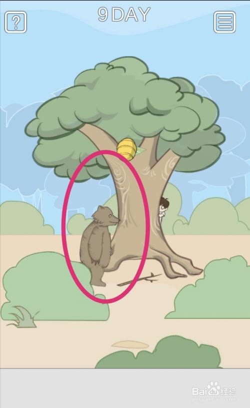 等男本家儿移动到大树后面时,再次点击【大树】,大黑熊就会呈现。