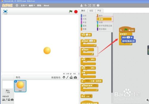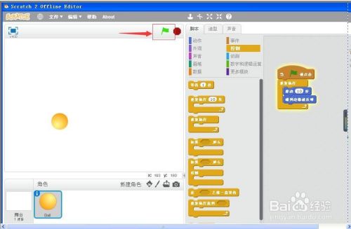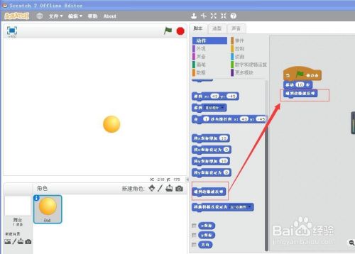 点绿旗,运行程序,小球就起头摆布轮回活动,并且碰到边缘就能反弹了。