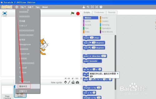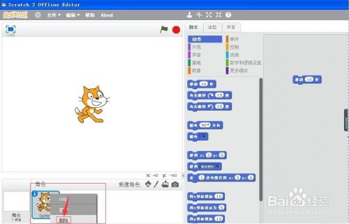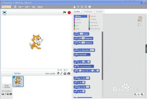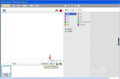 首先打开scratch程序,进入它的工作界面;