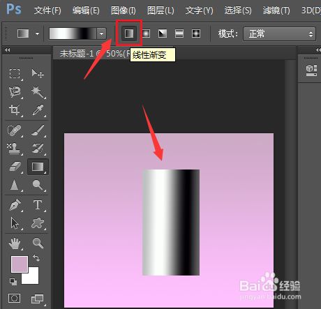 3.点击线性渐变按钮填充长方形,并打消选区