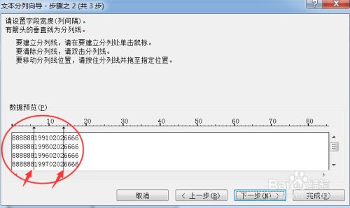 在“步调2”将身份证号出生日期的前、后画别离上一条线