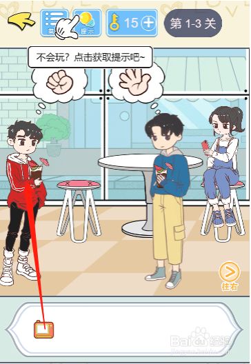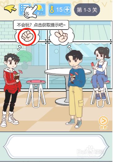 工具/原料小新13window10方式/步骤1首先我们将画面切换到右边2然后移开桌子上面的盆栽3随后拿到放在盆栽后面的相机4之后回到左边的场景将相机交给男本家儿5接着点击图示图标进行豁拳6这样子就可以顺遂过关了END