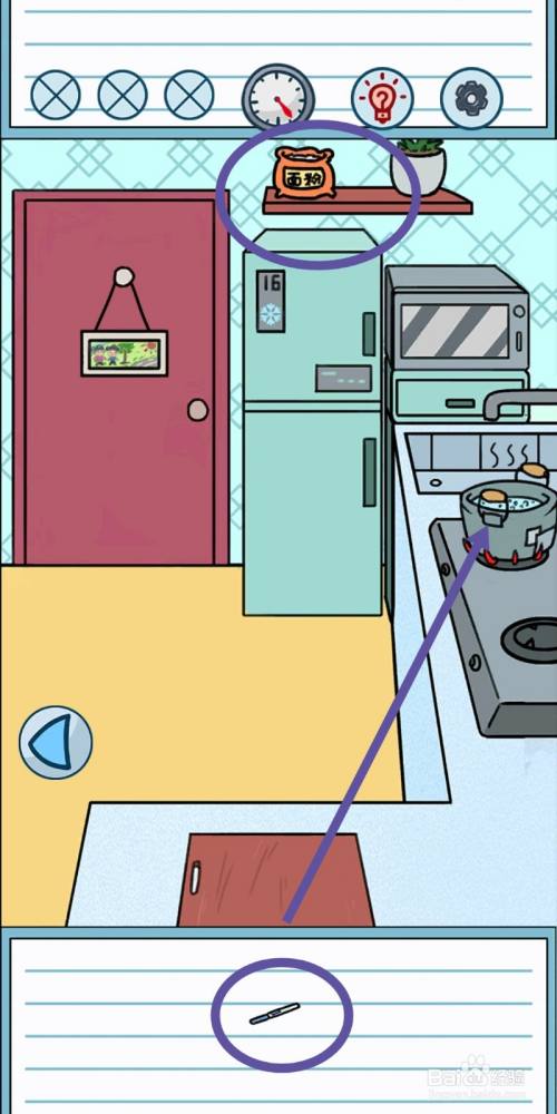 摇摆手机,可以拿到冰箱上的【面粉】。