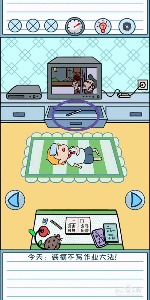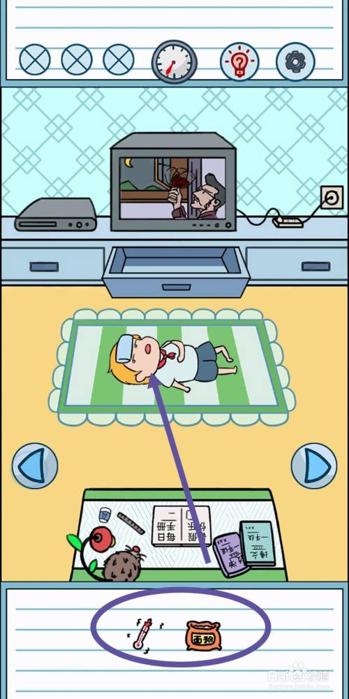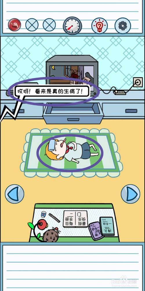 小黄面色发白、温度计读数超标,就能装病当作功了,游戏过关。