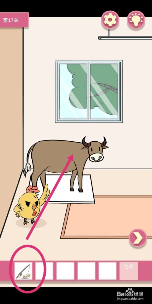 把【合当作道具】给大黄牛,就可以牵引着黄牛标的目的右进步。