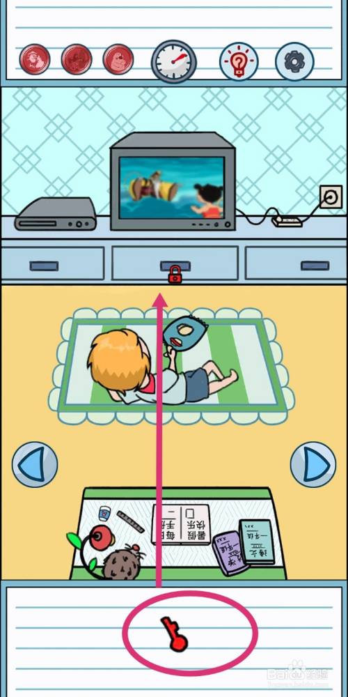 用【红色钥匙】打开抽屉上的锁,拿到【游戏机】。
