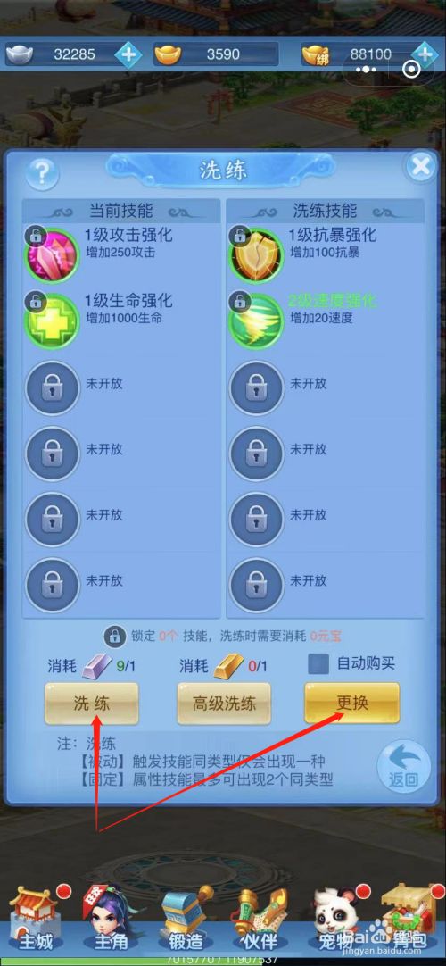 最后,点击“改换”之后,宠物技术就洗练当作功了。