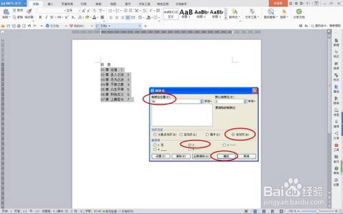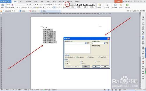 全选目次题目,点击东西栏“起头”选项卡界面中的“制表位”按钮,如下图红圈处按钮,弹出“制表位”对话框。