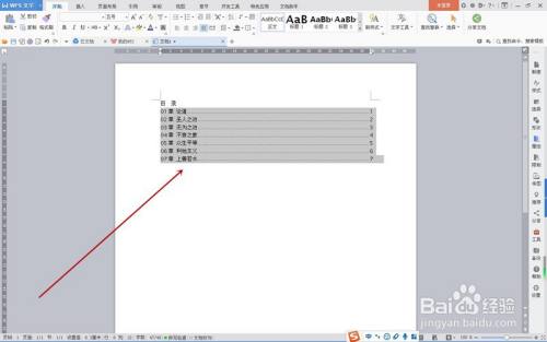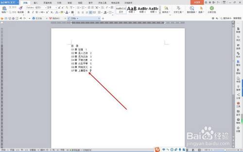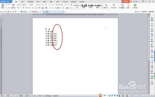首先,将目次的题目按下图样式输入到文档中。