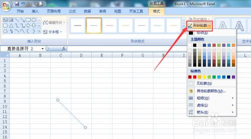 鼠标双击直线,打开“外形轮廓”下拉菜单。