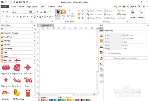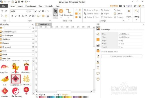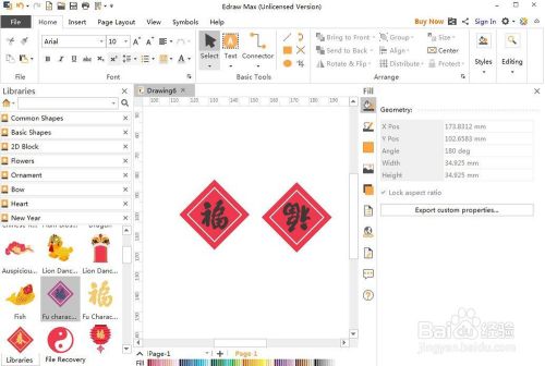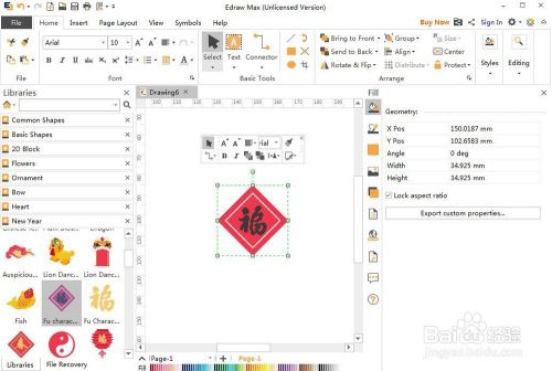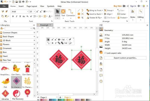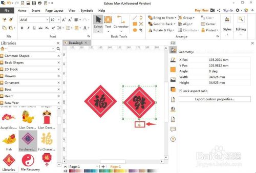 2、进入新年符号库中,找到福字,用鼠标将其拖放到编纂区;