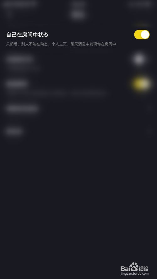 隐私设置界面点击“自已在房间中状况”后面的圆点