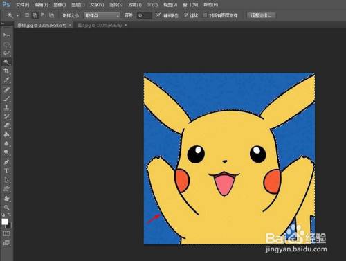 第二步:选择左边东西栏中的“魔棒东西”,设置为“添加到选区”模式,选中图片中的布景区域。