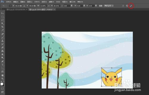 第六步:按住鼠标左键,将抠好的图案调整至合适大小,单击上方“√”按钮。