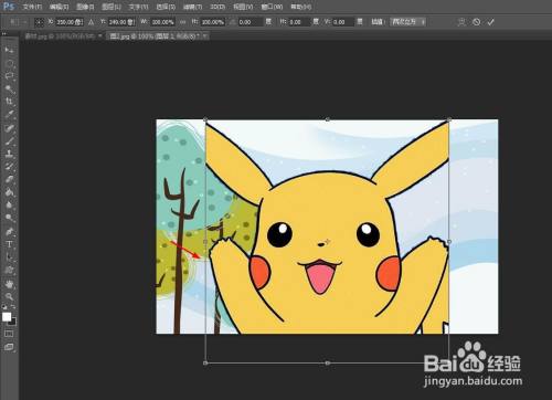 第五步:利用快捷键Ctrl+T键,抠图周围呈现调整框。