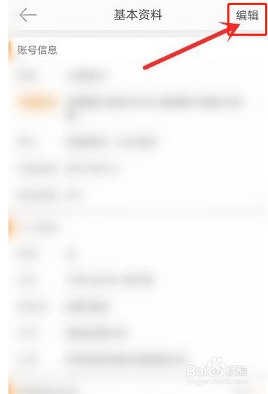 第四步,在根基资料页面,点击右上角编纂。